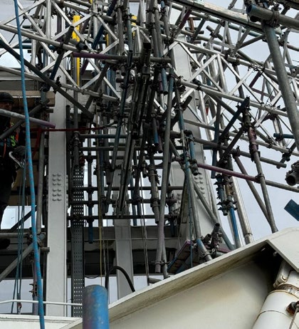 The project presented various challenges due to the work location and the scaffold loadings required. The main lifting gantry at Level 87 could not be based out directly on the building’s steel frame because of restricted loading. Instead, the structure was supported by the existing BMU steels, which could accommodate the necessary loads. Proplant introduced 780mm alloy beams to span the BMU support frame, forming scaffold towers up to six metres high, and used spin beams at high level to connect the scaffold towers.